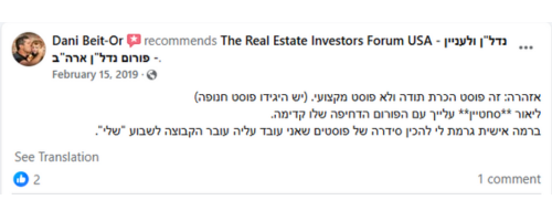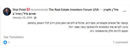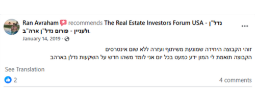 لسنوات عديدة، راودني حلم شراء عقار في الولايات المتحدة. التحقتُ بعدة دورات تدريبية حول هذا الموضوع، وعثرتُ على وجهتي - تكساس. لكن المشكلة كانت أن المبلغ الذي كنتُ أملكه لم يكن كافيًا لشراء الشقة المزدوجة التي وجدتها، والحقيقة أنني لم أكن أعلم أنه بصفتي مقيمًا أجنبيًا، وبدون سجل ائتماني أمريكي، وبدون رقم ضمان اجتماعي، يُمكنني الحصول على تمويل. رأيتُ منشورًا عن شركتكم في منتدى العقارات الخاص بكم، وهو بالمناسبة مُعجبٌ به للغاية، وسعدتُ بمناقشته مع يائيل الجميلة التي شرحت العملية. ويسعدني أن أعلن أننا تمكنا من شراء العقار خلال شهرين.