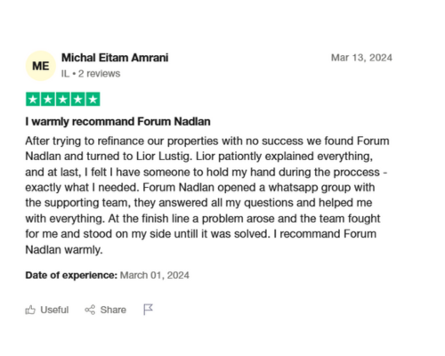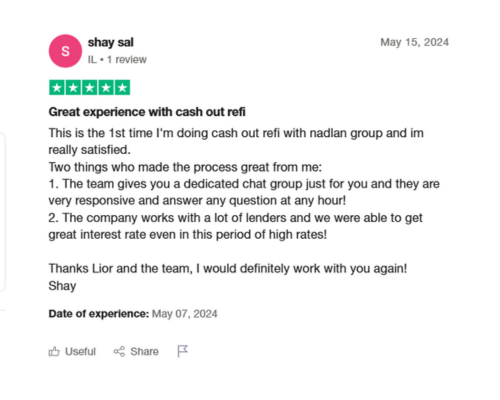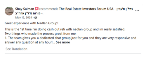 أشتري عقارات في الولايات المتحدة منذ عام ٢٠١٠، ولديّ محفظة استثمارية تضم ٣٢ عقارًا في فيلادلفيا. نظرًا لارتفاع أسعار العقارات، قررتُ توزيع المخاطر وإنفاق رأس المال على هذه العقارات نظرًا لشرائها نقدًا، وشراء مبنى في ويسكونسن بهذه الأموال. ملأتُ نموذج طلب التمويل الإلكتروني لمجموعة نادلان كابيتال، وفي غضون يوم عمل واحد، بدأتُ بتلقي عروض تمويل، وتواصل معي مستشار عقاري. على الرغم من أن العملية استغرقت بعض الوقت ولم تكن سهلة التنفيذ من إسرائيل نظرًا لضرورة تقييم جميع هذه العقارات، إلا أن أليكس، مستشار الرهن العقاري الرائع في مجموعة نادلان كابيتال، ساعدني طوال العملية وكان دائمًا متاحًا لي. يسعدني أن أوصي بالشركة وخدماتها. لم أكن لأتمكن من القيام بذلك بمفردي.