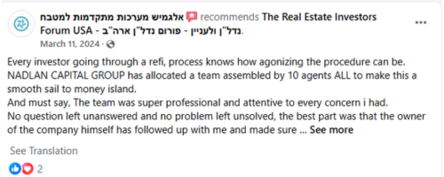 يخبر العملاء عن عملية التمويل مع Nadlan Capital Group Consultants
